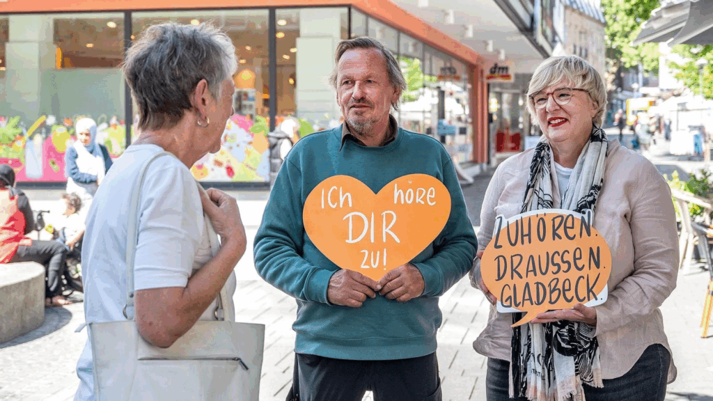 zuhören draussen – listening outside is an initiative that connects citizens by listening to them in public spaces. Across all social classes, milieus, cultures and generations. With over 300 volunteers in 15 German cities, we are a civil society, non-profit organization based in Düsseldorf that takes a stand against loneliness and social division.