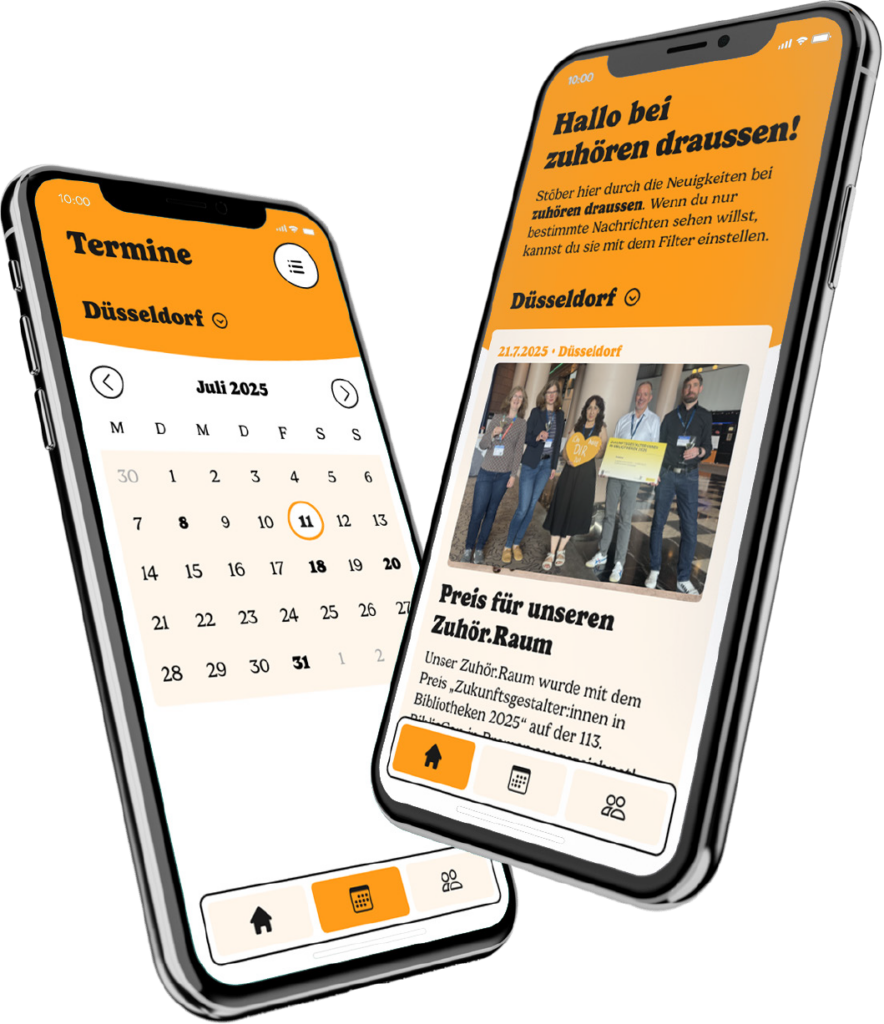 Starting in Spring 2026, all project participants will have access to the listening.app. All city coordinators will be able to enter their listening.app appointments into an editorial system themselves, and the appointments will then be reflected in the app and on the website. Volunteers will be able to register for appointments independently via the listening.app and will be automatically reminded. City coordinators will also be able to manage their volunteers via the CRM of the listening.app, send reminders and notifications, and request evaluations of listening.appointments. Anyone interested in the cities will be able to register for listening.appointments and arrange to listen to others.